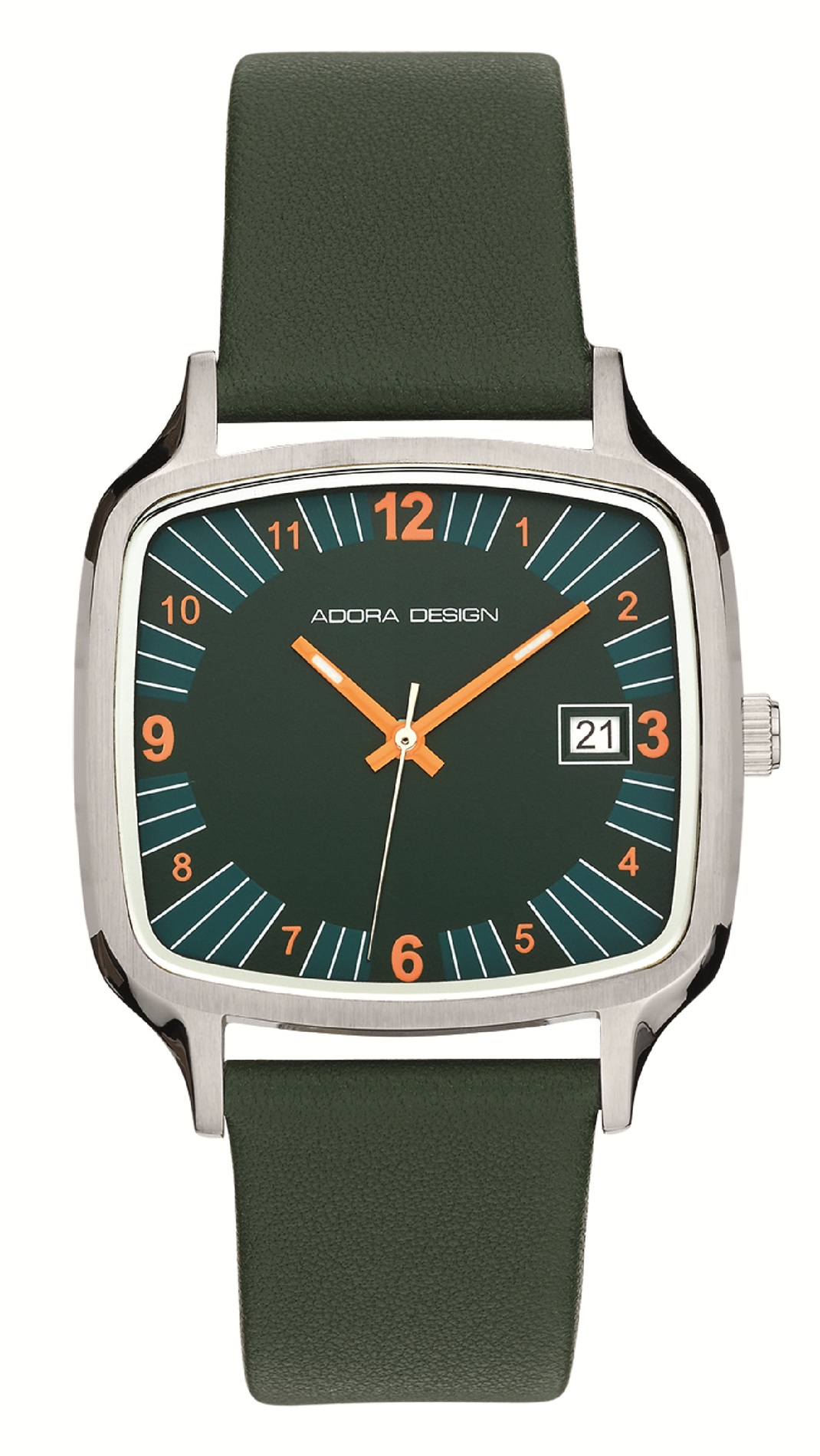 Adora Design Damenuhr Datum Quarz Leder Grün 36mm AD8848
