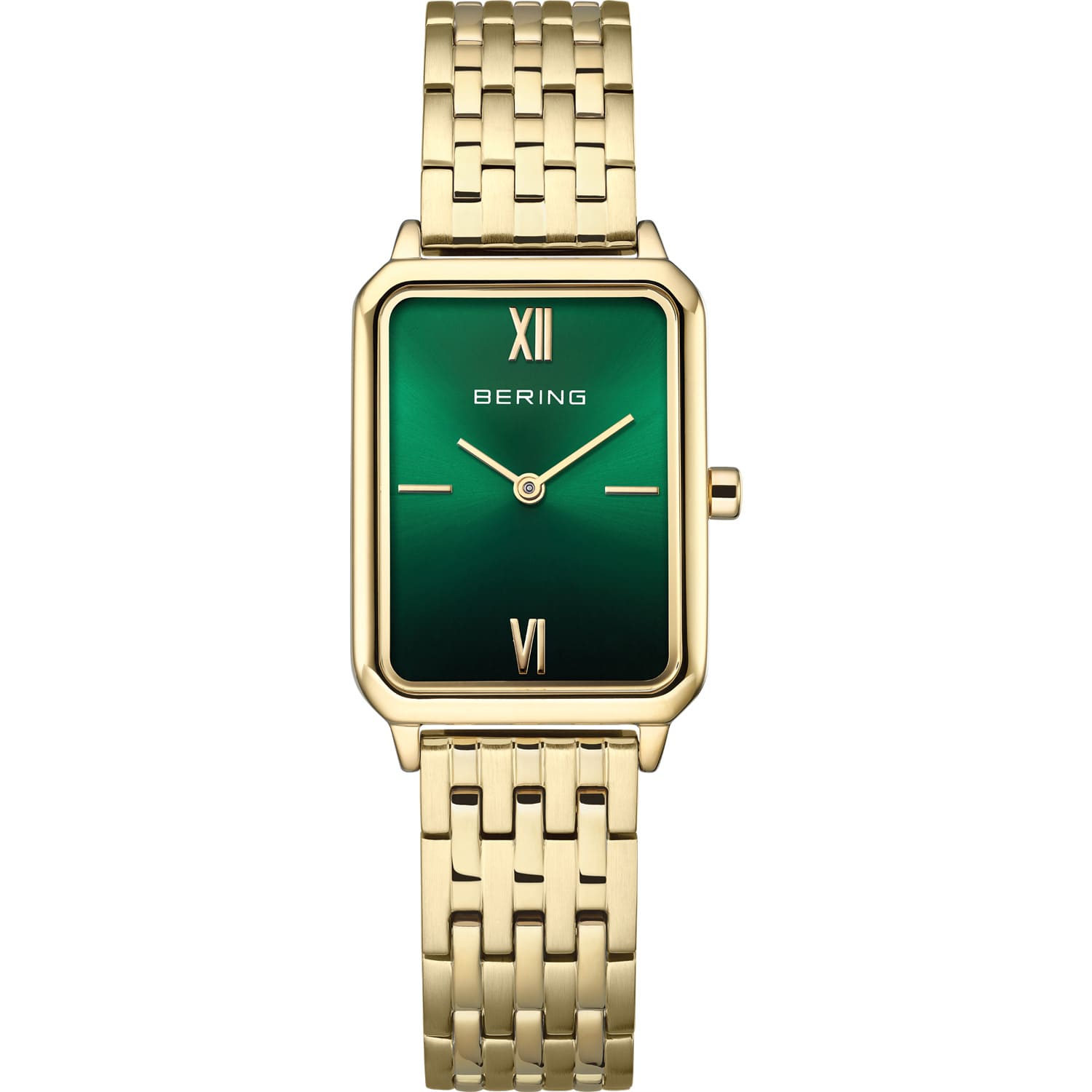 Bering Damenuhr Edelstahl Saphirglas Rechteckig Goldfarben Grün 17423-738