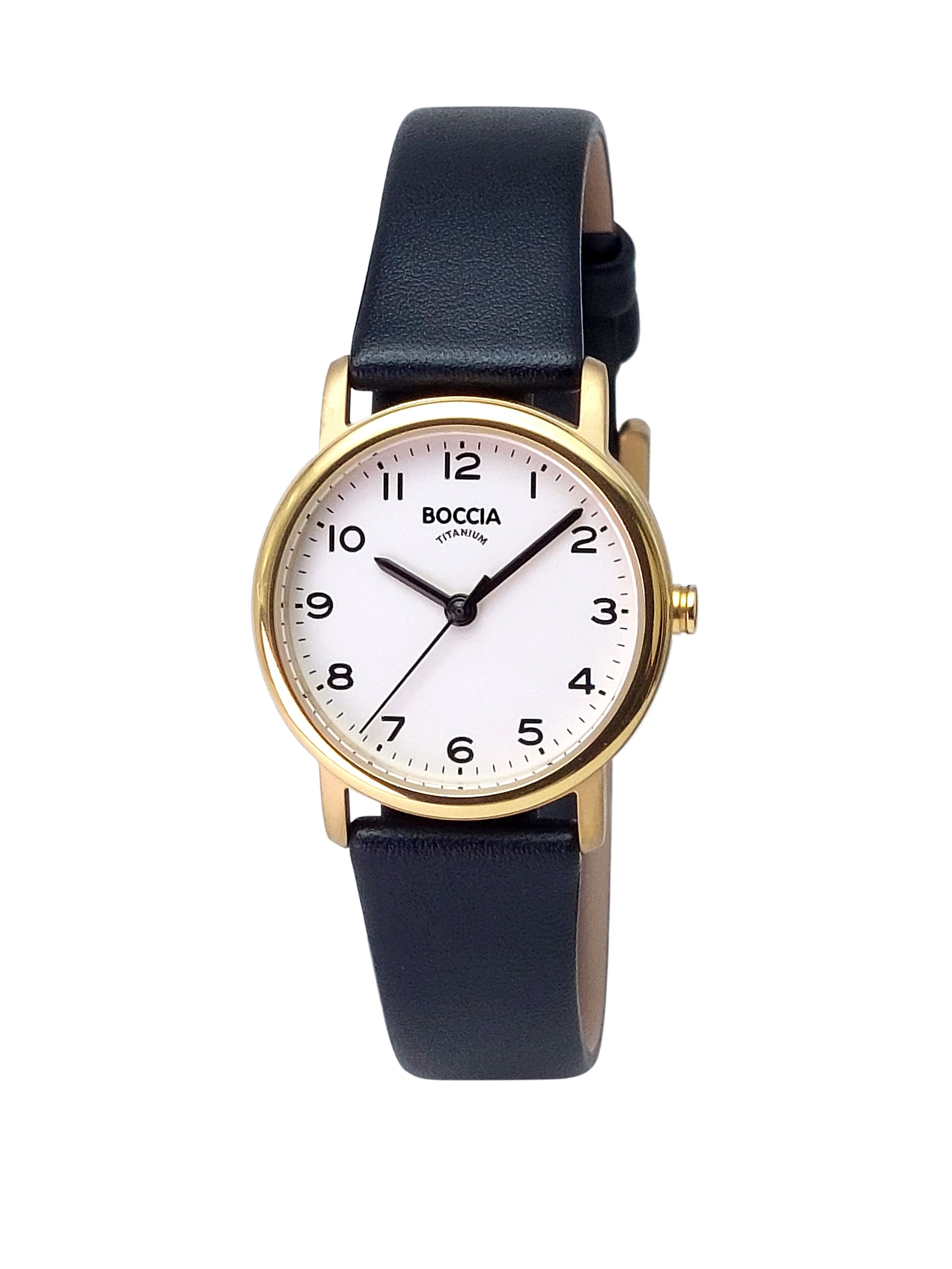 Boccia Titanium Damenuhr Quarz Titan Leder Goldfarben 30mm 3368-02