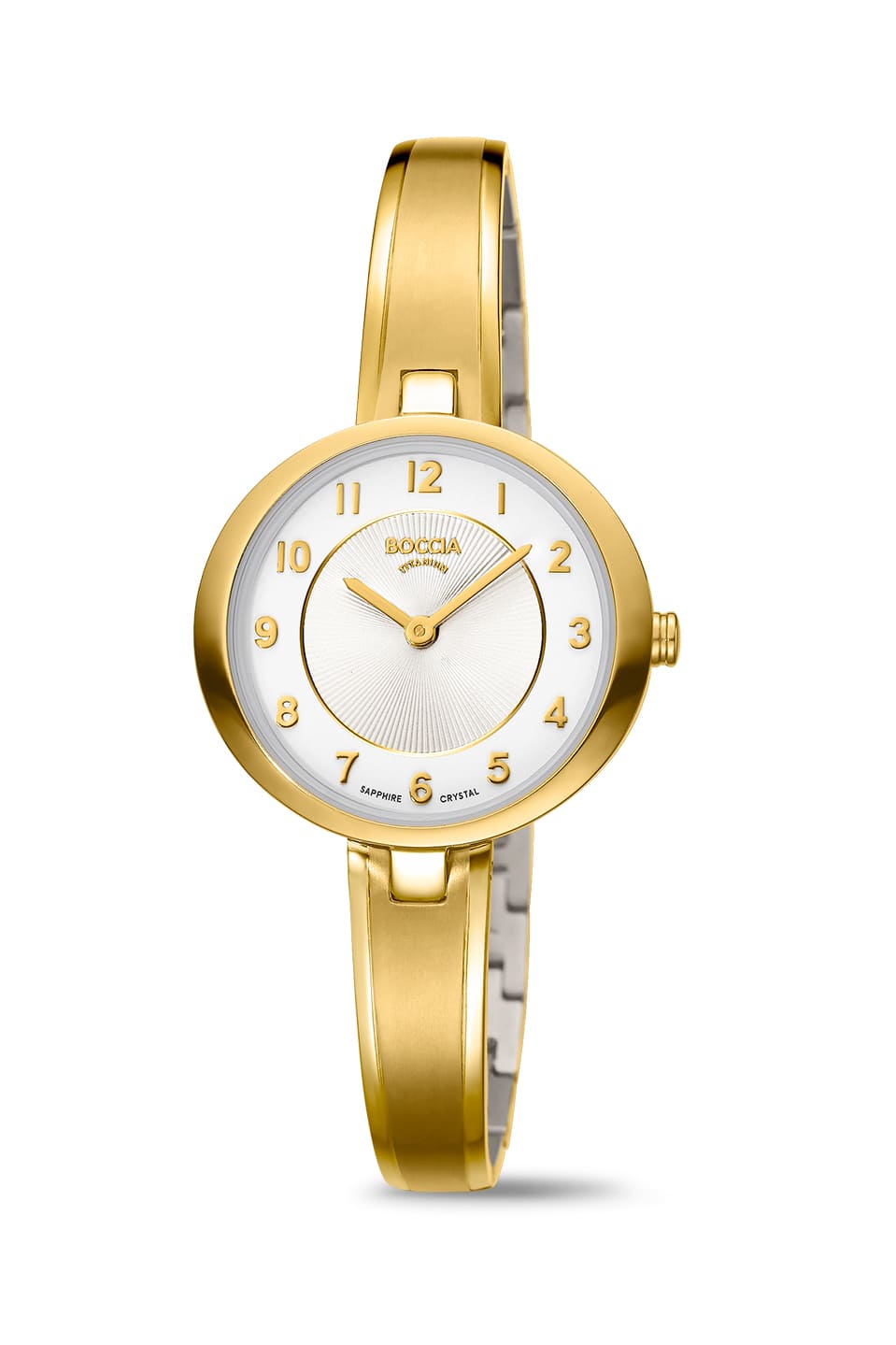 Boccia Titanium Damenuhr Saphirglas Halbspange Goldfarben 30mm 3377-02