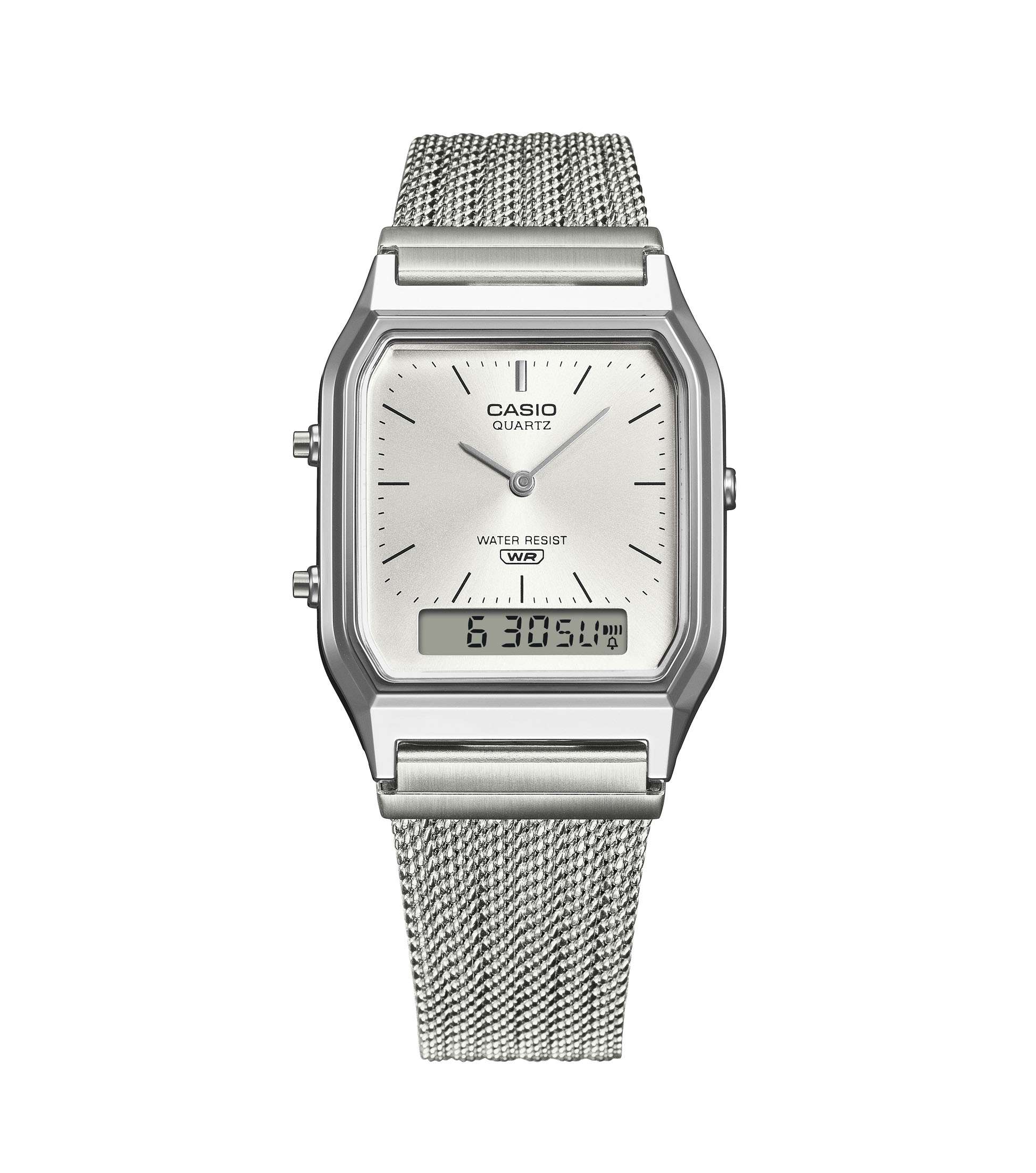 Casio Herrenuhr Unisex Analog-Digital Alarm Stopp Mesharmband AQ-230EM-7AEF
