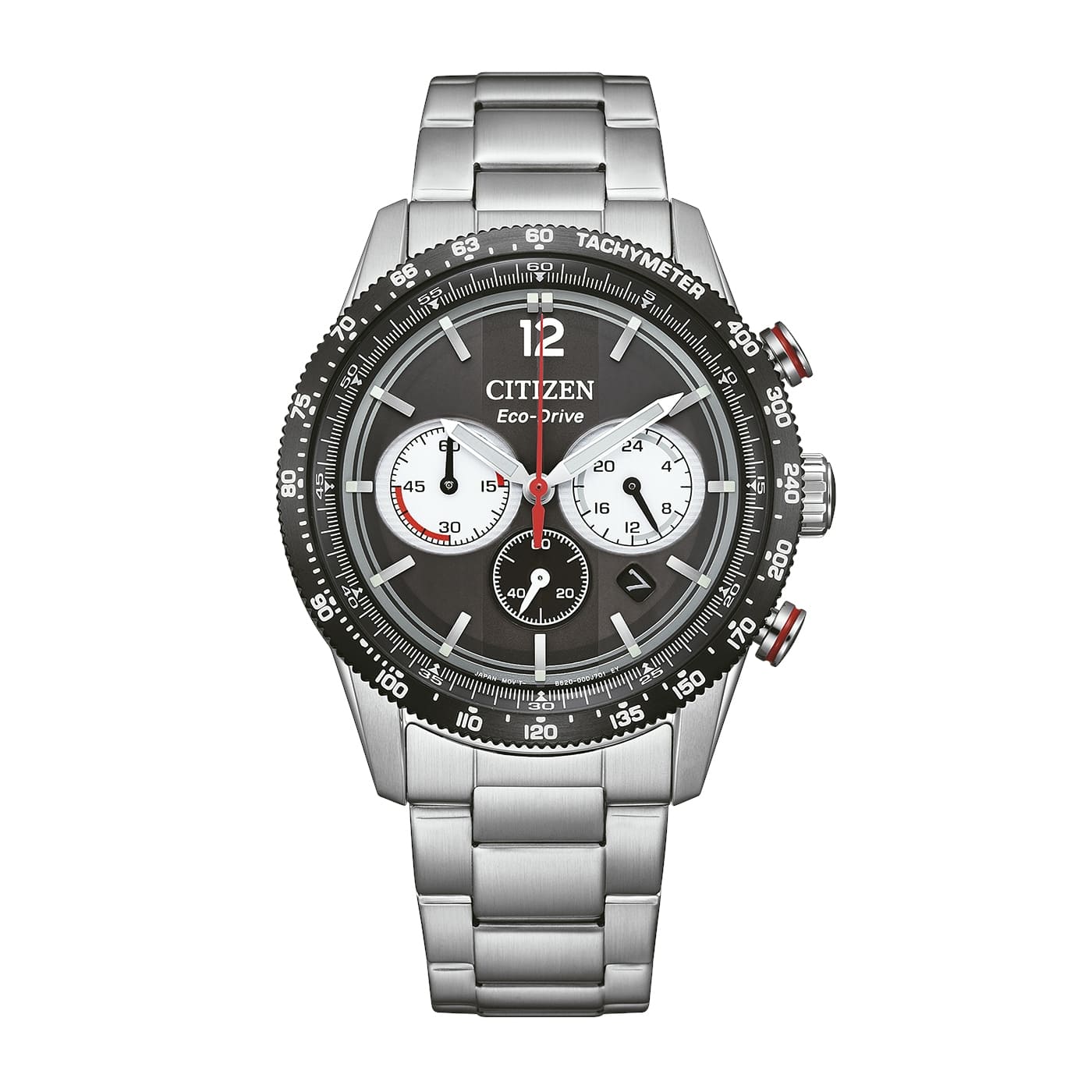 Citizen Herrenuhr Chronograph Eco-Drive Solar Schwarz Edelstahl 10BAR CA4714-55E