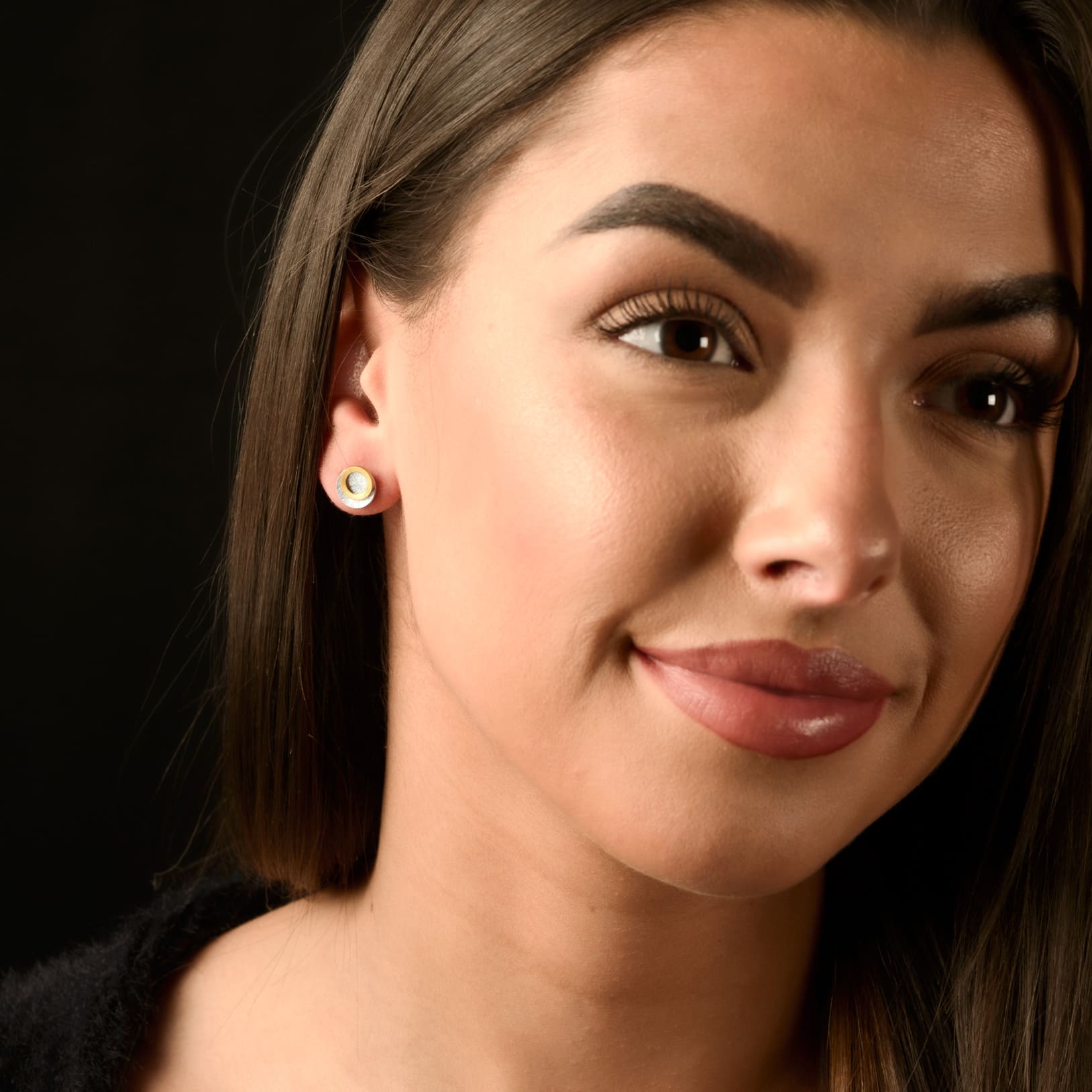Ernstes Design Damen Ohrringe Ohrstecker Rund Bicolor Edelstahl E593