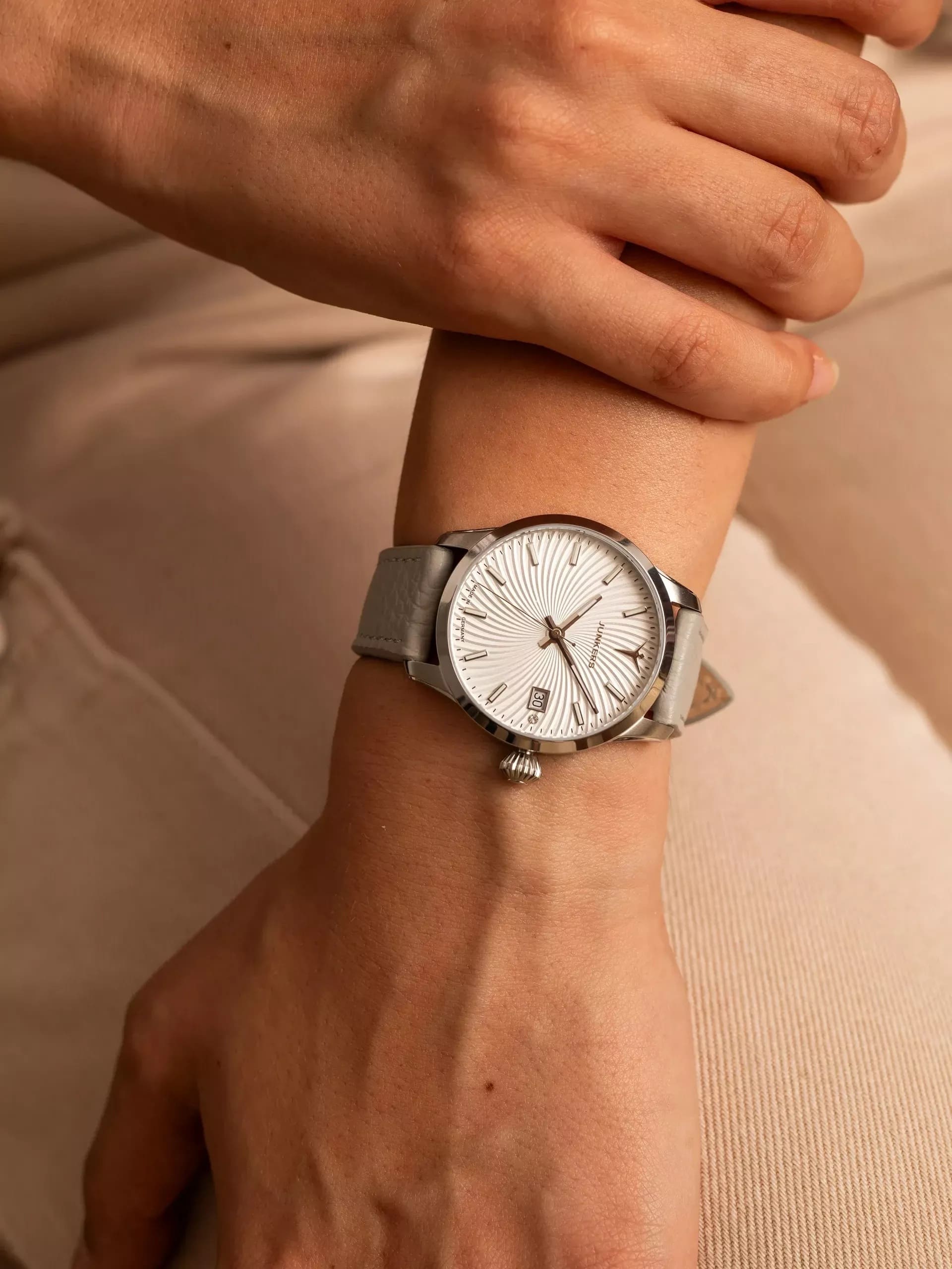 Junkers Damenuhr Victoria Datum Saphirglas Leder Grau 970.02.03