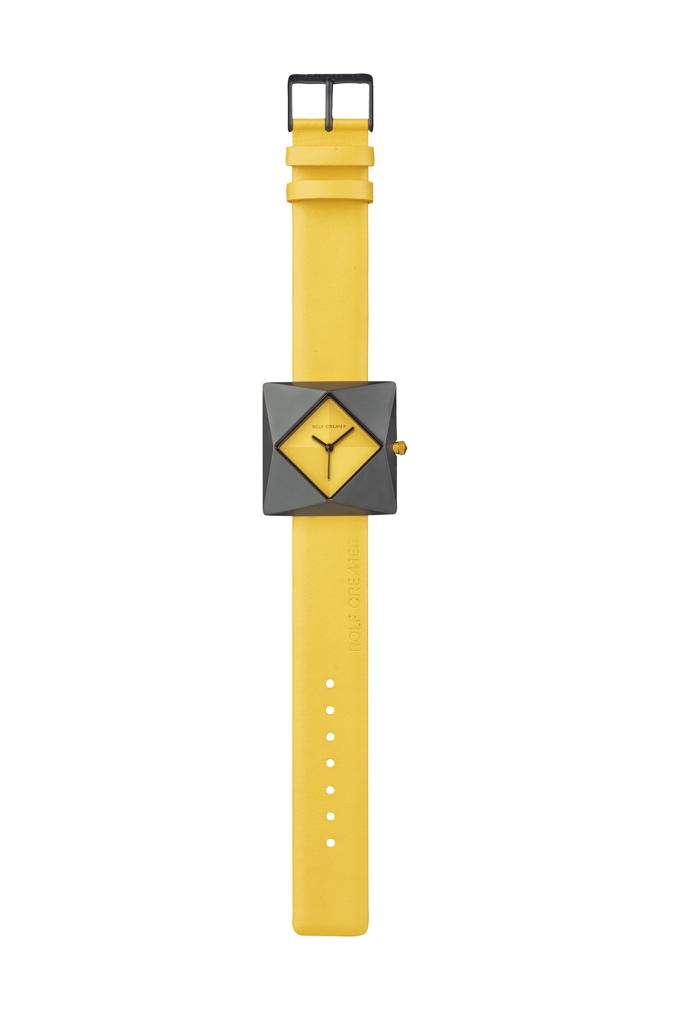 Rolf Cremer Damenuhr Karat Schwarz Leder Gelb 36mm 507006