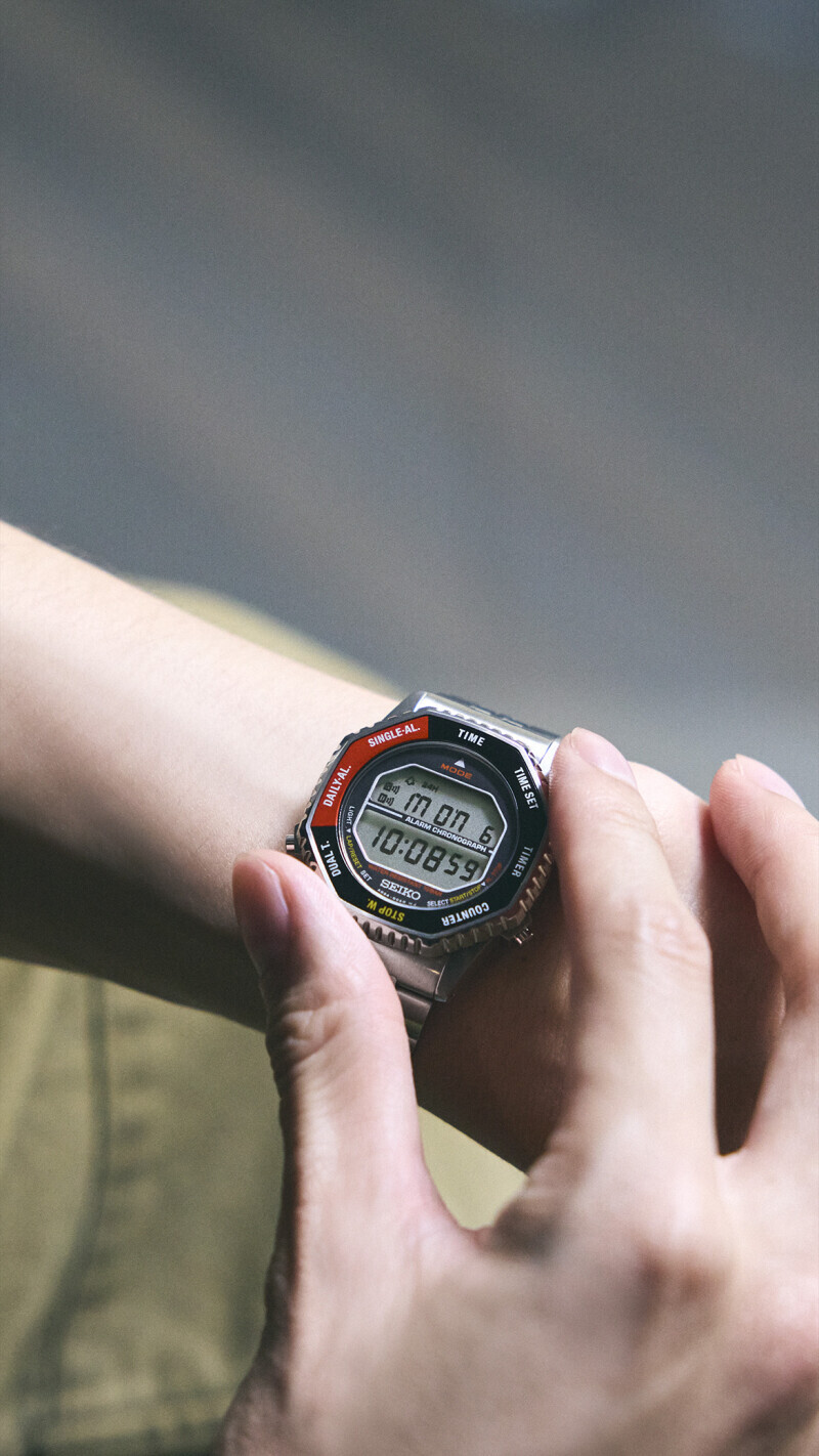 Seiko Herrenuhr "Rotocall“ Digital Alarm 10BAR Rot 37mm SMGG19P1