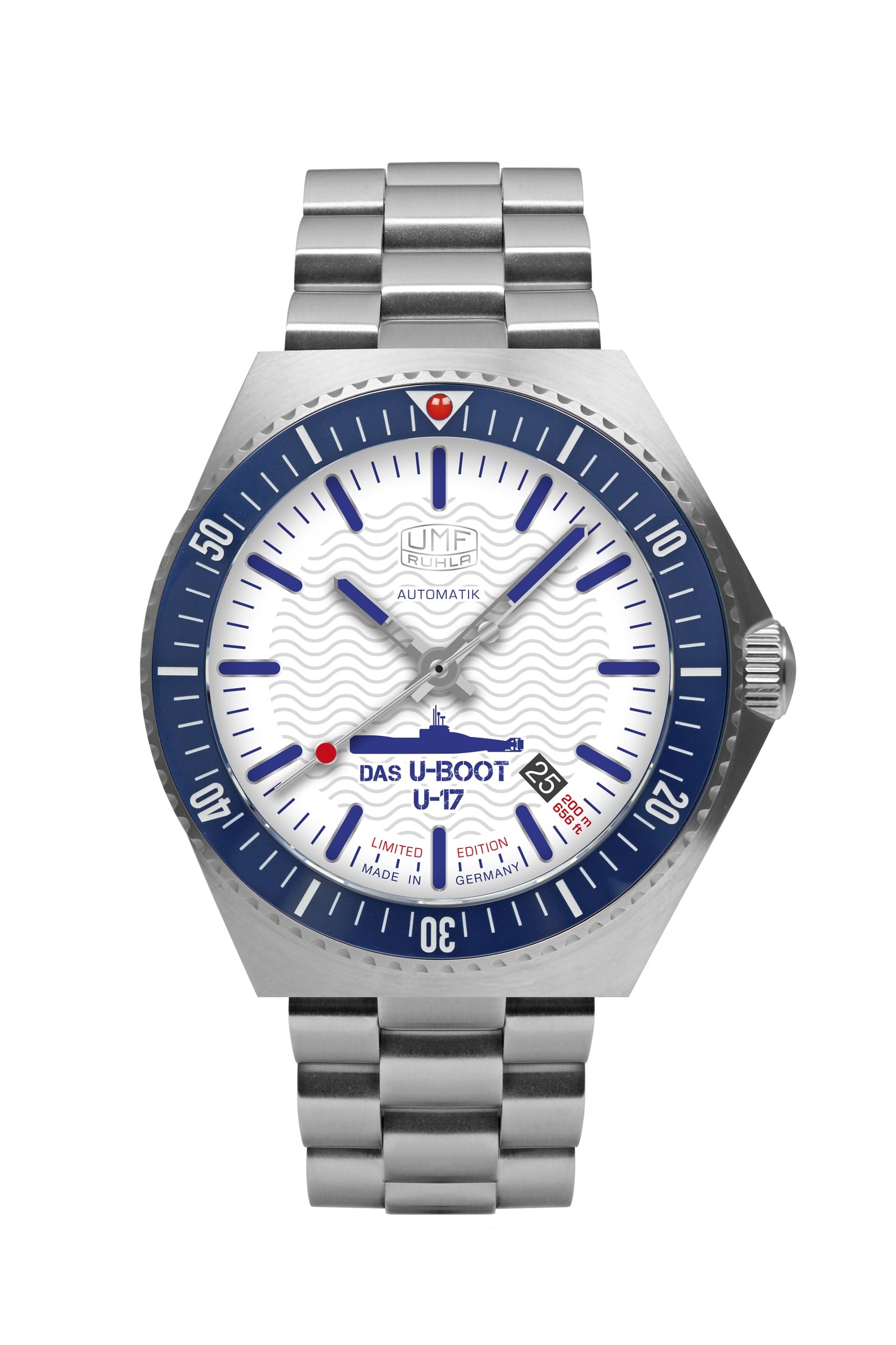 UMF Ruhla Herrenuhr Automatik U-Boot Saphirglas Weiss Limited 1930M-1